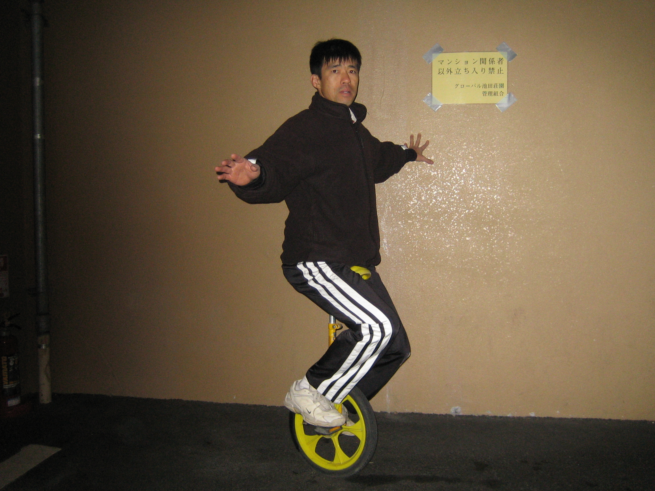 冬場のバランストレーニングの一環として、一輪車の練習も昨年から子供と一緒にやっています。すごくスキーに役立つような気がして行っています。うちの小学校区では一輪車クラブなどもあり結構流行っていて、上手な子はすいすい乗り回していますが、うちの子は全然乗れません。おっさん一人で一輪車の練習を真剣にしていたら、周囲から異様な目で見られると思うので、必ず子供と一緒に練習するようにしています。