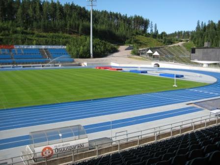 ラハティの駅を降りて、メインスタジアムまで迷いながら30分、ポールを担いで歩きました。後で聞いたら、無料シャトルバスがあったので、それに乗れば良かった。