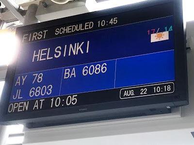 10時45分関空発。JAL便ではなく、フィンエアーの機体なので、JALのような美味しい機内食や最新の映画はありませんでした。
