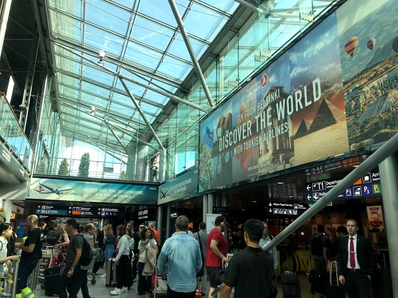 6時半に自宅を車で出発。関空7時半過ぎに到着。車を駐車業者に預けチェックイン。今回棒高跳びのポールを預ける関係で私はフィンエアー、嫁はJALで予約しました。共同運航便で同じ機体なのですが、フィンエアー経由でのみ4mのポールの運搬許可が貰えたからです。運良く、二人隣の席を確保出来ました。