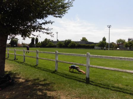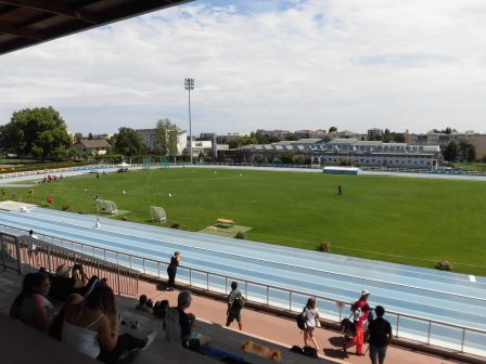 少し早めのお昼に、アパートを出て会場に向かいました。今日の会場は、ブロンのスタジアムです。早めに行って七種に出場している梶原さんの応援をしました。