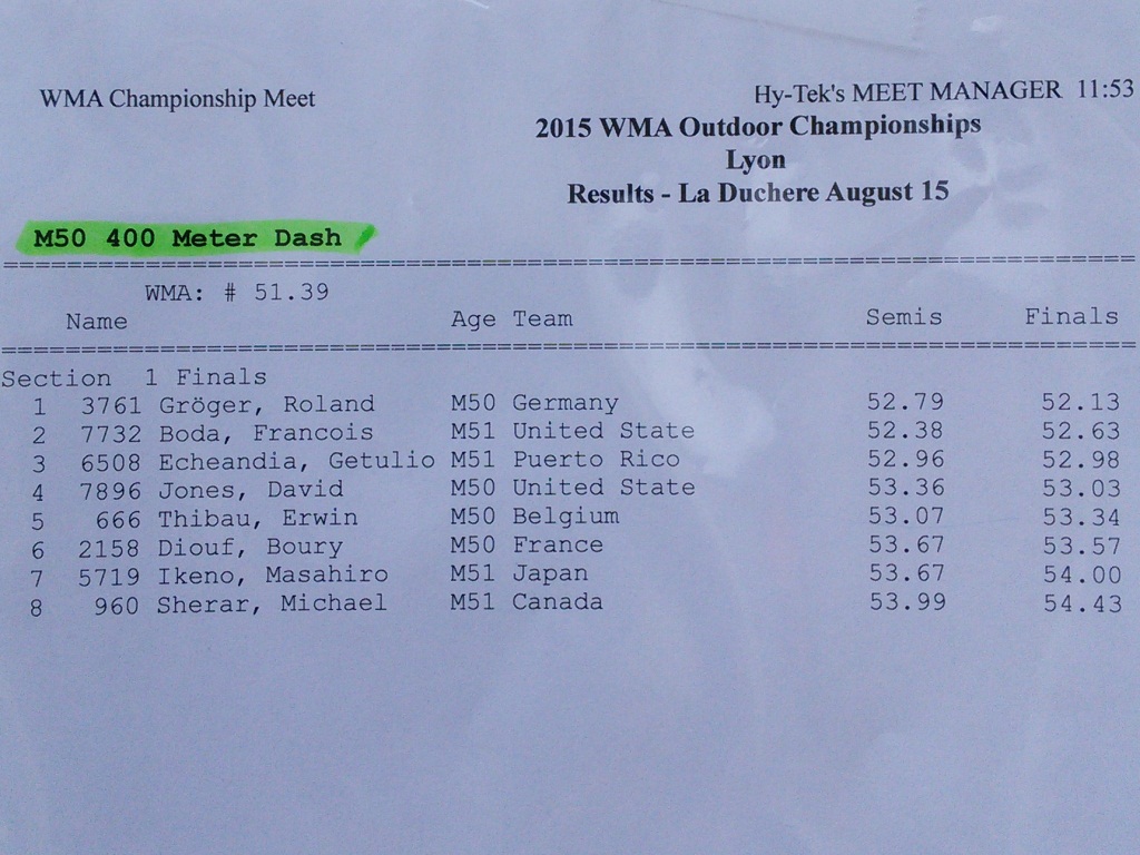 フィンランド大会銀メダルのマイケル・シェーラーは8位。彼は北京世界陸上マスターズ800mにも出場しますが、彼に勝てたのが唯一の救いか・・・