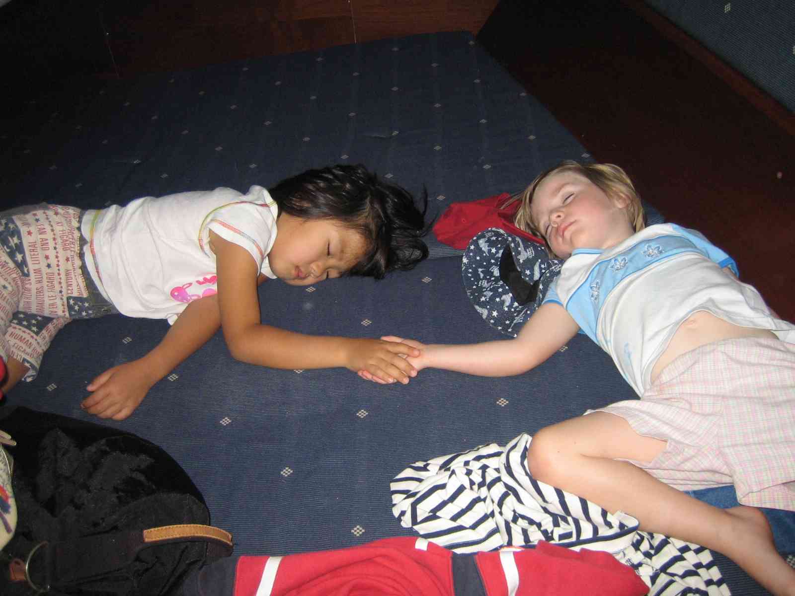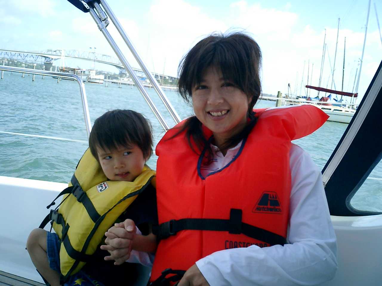 子供たちは、船酔いしないか心配でしたが、とりあえずは元気そう。船の中でお菓子を食べたり、かくれんぼ(hide and seek)をしたりしています。よっぽど楽しかったのか、後でNZで一番楽しかったのは何かと聞くと、純は「かくれんぼ」と答えていました。