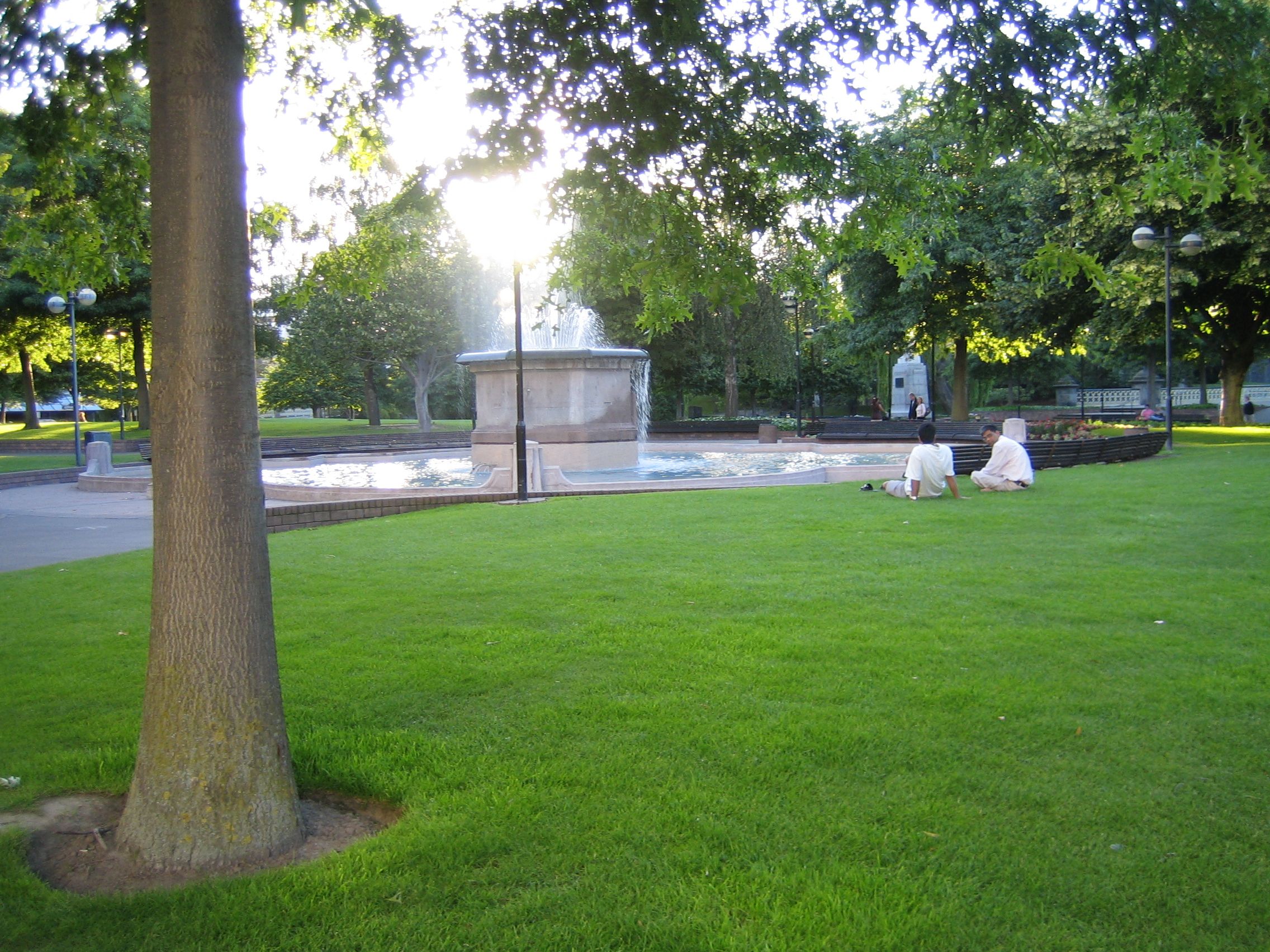 帰っているうちに、雨もやんできたので、宿の横の公園で遊びました。さすがいい季節、ガーデンシティーと言われるだけあって、色とりどりの花が咲いていました。子供たちは芝生の上をそれぞれ走り回ったりして、とても楽しそうでした。