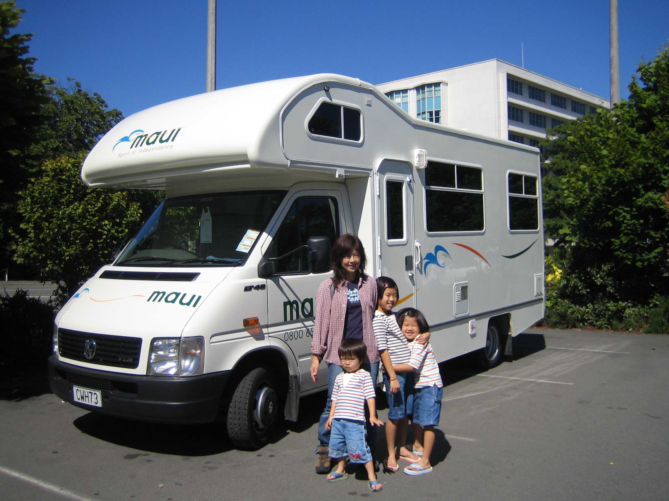 いろんな装備の使い方の説明を受けて、オフィスを出発したのが9時15分、今走ってきた道を車で帰ってYMCAに9時30分に到着しました。すぐにチェックアウトをして荷物を車に運び込み、車の前で記念撮影。子供たちはキャンピングカーに大喜びです。