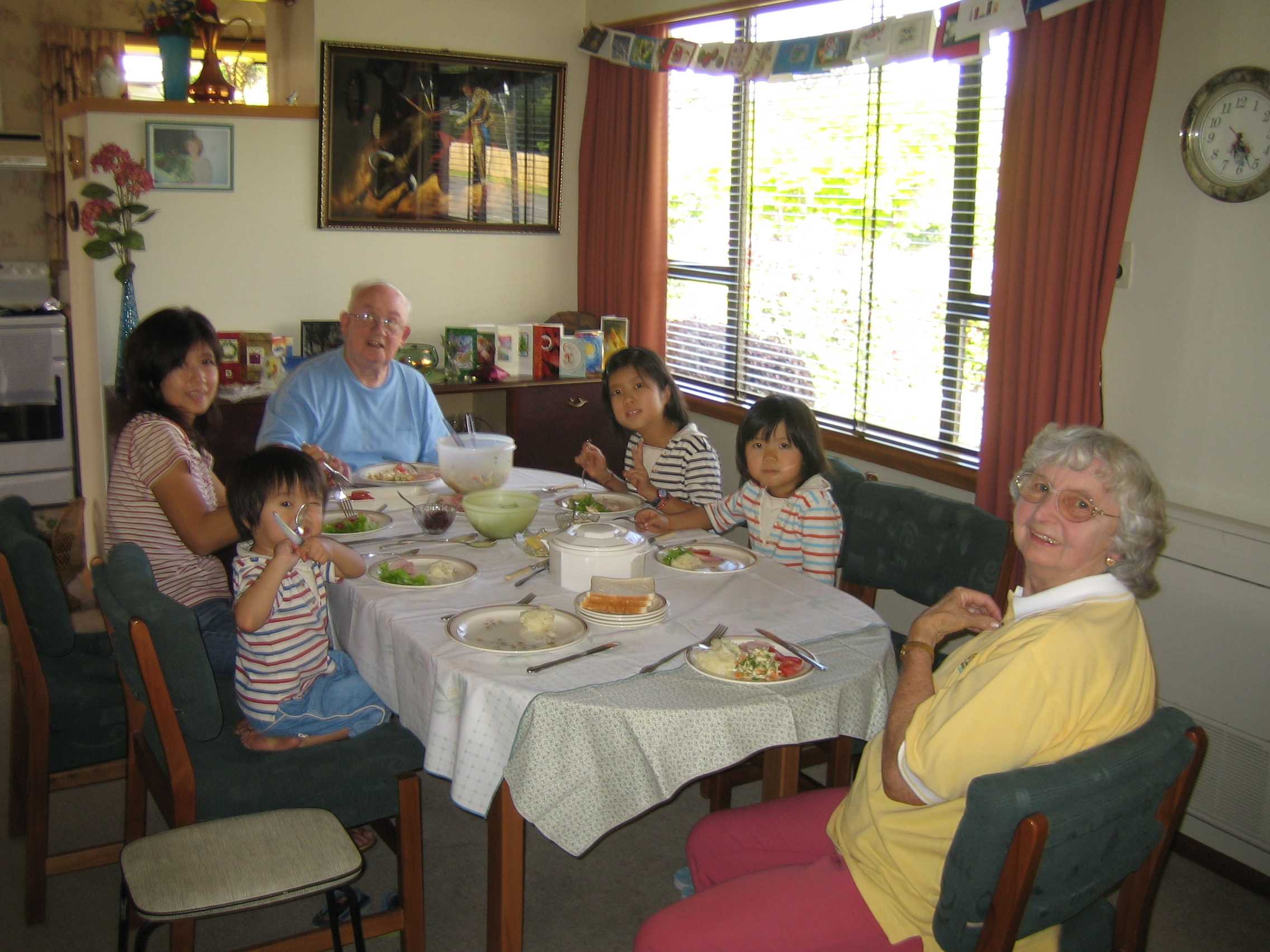 5年ぶりにレイとヘレンに再会。レイはいろんな病気(がん等)を患ったりして、膝を悪くして歩くのがしんどそうでしたが、二人とも元気に迎えてくれました。サンドイッチを作ってもらいお家で昼食。子供たちは玄関に置いてあるスイングソファーが気に入って遊んでいます。