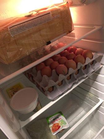 朝食も、地下のキッチンで、食パン、ジャム、生卵、米、キムチが飛べ放題でセルフで食べる形式でした。1泊2000円の割には、とてもグッドでした。